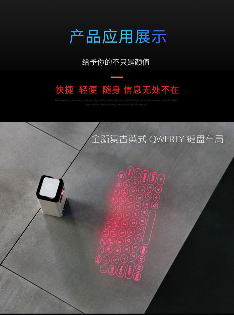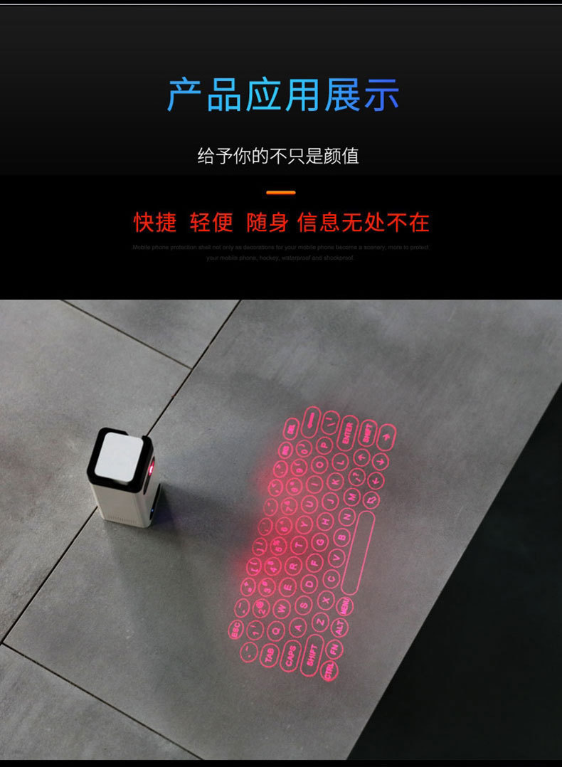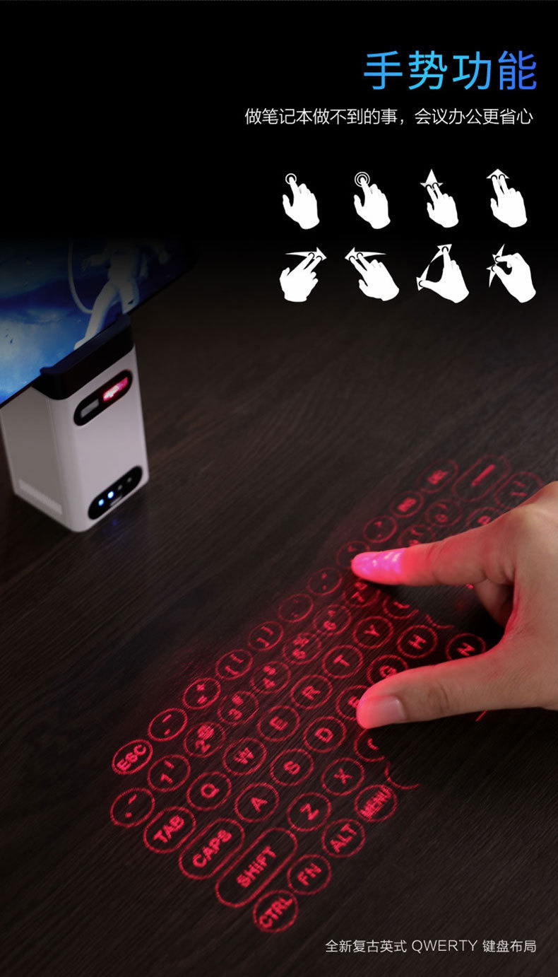 Laser Projection Virtual Keyboard Phone Bluetooth 3.0 Wireless Projection Touch Infrared Keyboard with 2500mah Power Bank Gifts